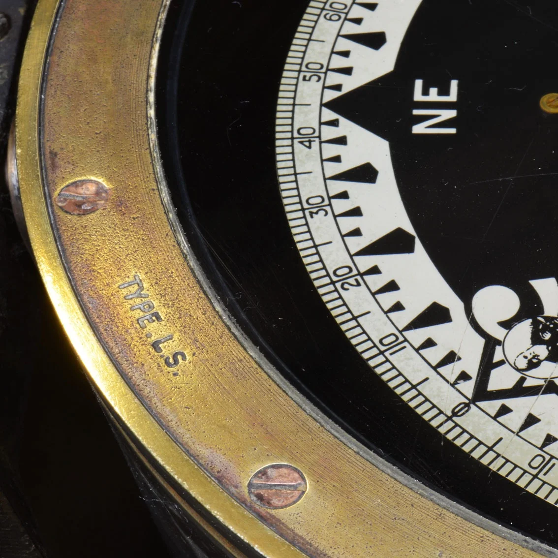 A substantial antique ship's binnacle compass by Kelvin, Bottomley and Baird of Glasgow, the compass dial bearing the company's name and also engraved with 'Type LS' and also the serial number 185/43. The stand is in teak and retains a very good colour/shine. It is marked 'AFT' to the base, assisting with precise alignment. Kelvin, Bottomley and Baird operated under this name between 1913 and 1947, later becoming Kelvin and Hughes. The binnacle stands an impressive 125cm (49") tall and the compass is 23cm (9") in diameter. SOLD - but please visit my online shop for similar items.
